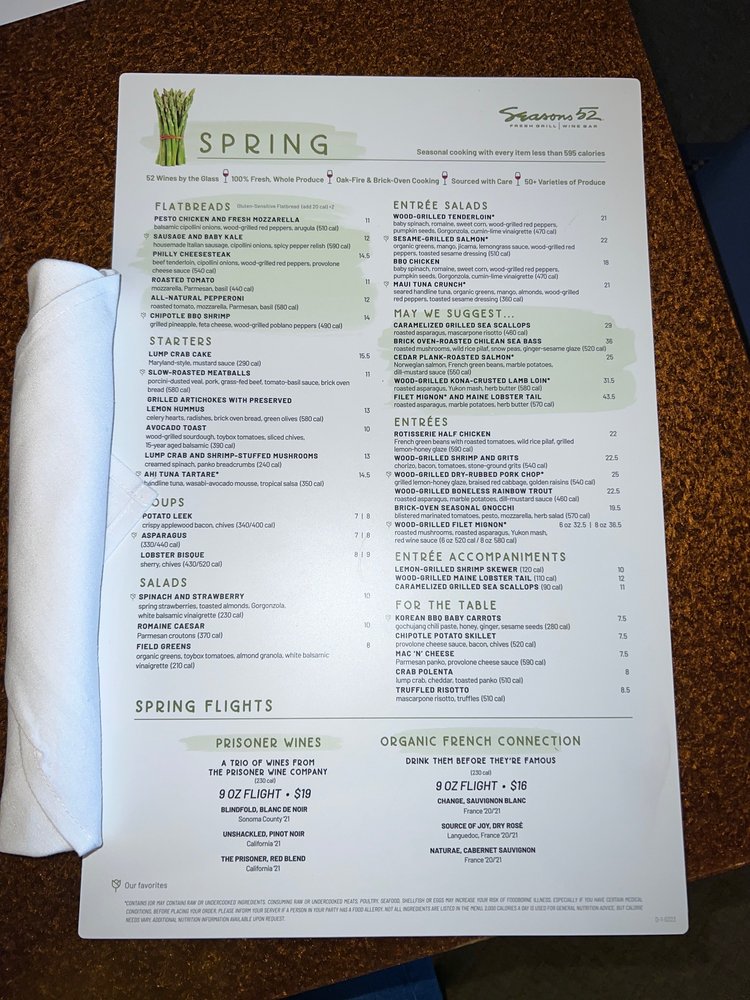 The restaurant prides itself on offering a selection of fine wines, from crisp Santa Julia Pinot Grigio to bold Tilia Malbec, paired perfectly with the meals. Guests appreciate the intimate atmosphere, great for date nights or cozy gatherings, highlighted by stellar service that enhances the dining experience. With tasty shareable plates like flatbreads and delectable desserts in shot glass portions, Seasons 52 Orlando is a must-visit for both locals and tourists seeking a memorable culinary adventure.