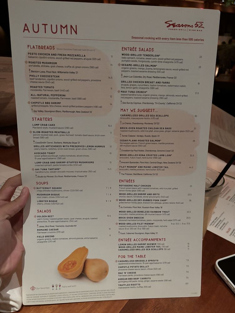 Seasons 52 Orlando, located on W Sand Lake Rd, is a delightful blend of New American cuisine with an emphasis on seasonal ingredients. This vibrant wine bar specializes in fresh seafood and healthy dishes, appealing to the discerning diner. Their menu showcases some standout items, including the exquisite cedar plank salmon and savory shrimp and grits, both praised for their flavors and presentation.
